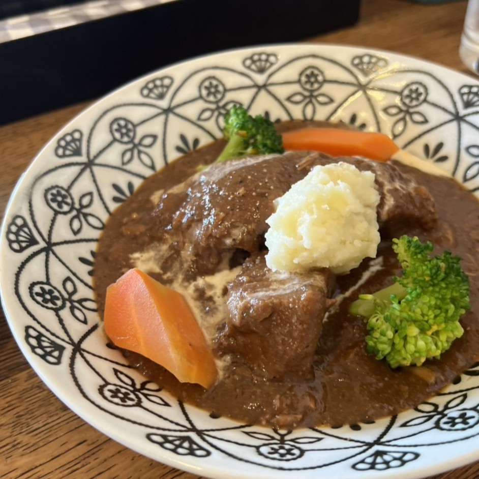 ハンバーグやタンシチューにはちいさめのスープがついていて、この大きさでも十分です。