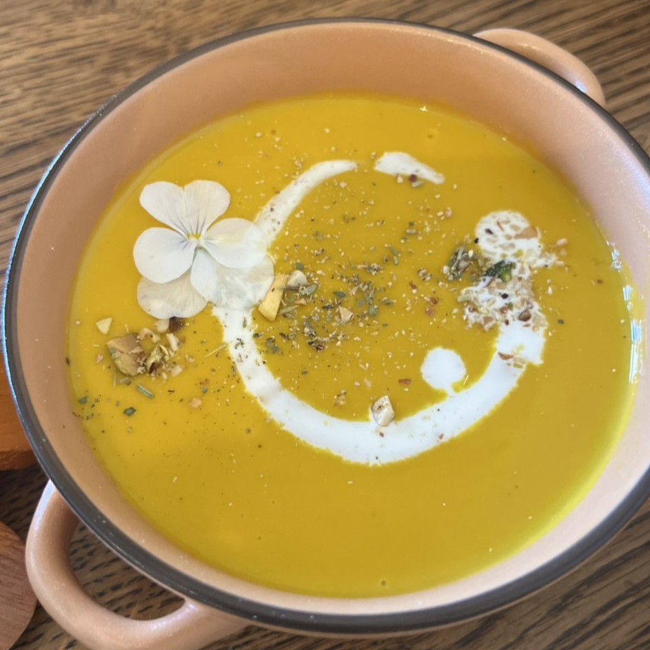 スープとパンのセットでは、大きなサイズのスープがついていて、