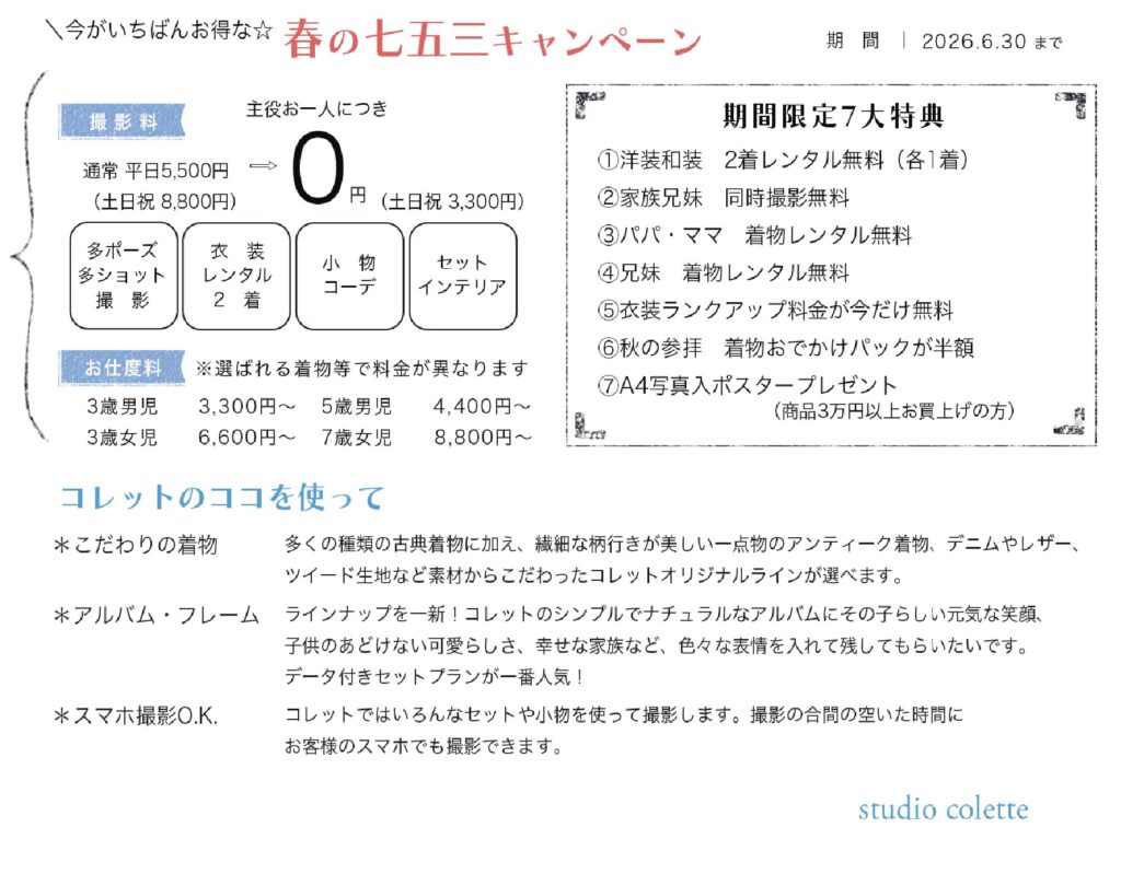七五三前撮りキャンペーンが始まります。