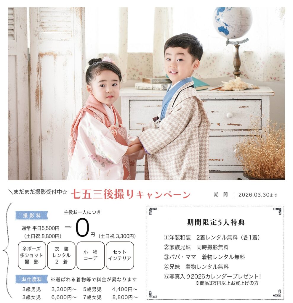 七五三後撮りキャンペーン開催中。